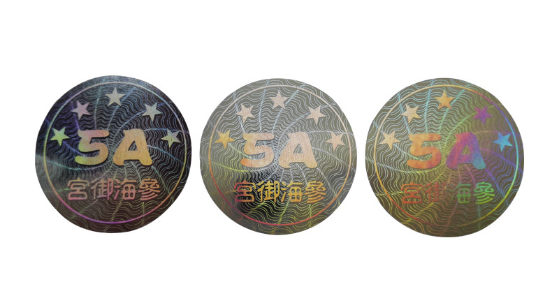 激光防偽標(biāo)簽一般有亮銀或亮金兩種顏色材質(zhì),其他顏色或材質(zhì)可根據(jù)產(chǎn)品特性及使用條件進(jìn)行定制。