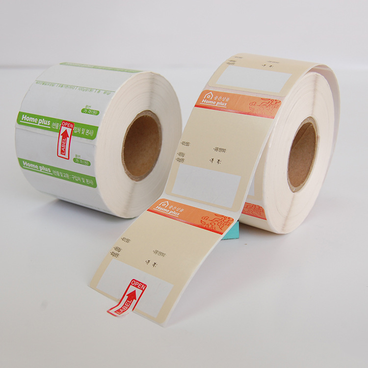 熱敏紙不干膠標(biāo)簽是在傳統(tǒng)不干膠標(biāo)簽紙上,覆蓋了一層由熱敏材料組成的圖層,熱敏材料一般由多種復(fù)合材料組成,在一般狀態(tài)下熱敏圖層無任何現(xiàn)象,但是當(dāng)熱敏紙不干膠標(biāo)簽經(jīng)過